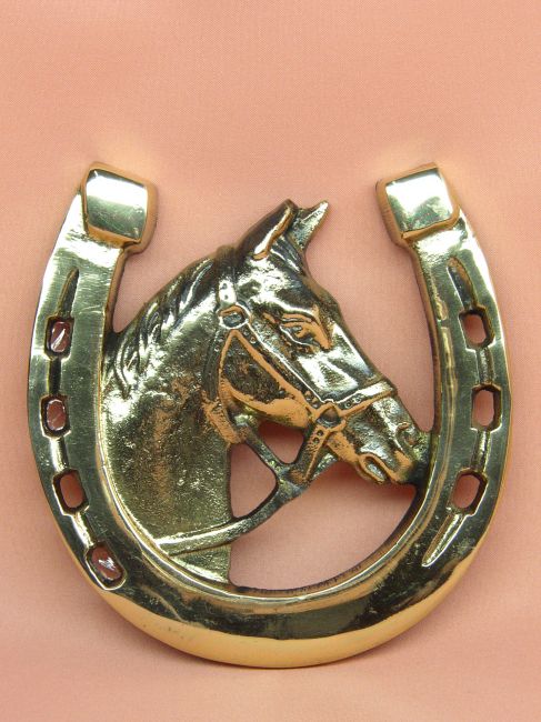 Piękna mosiężna, oksydowana podkowa z głową konia przynosząca szczęście. (Nr prod.: 980/Z-45)