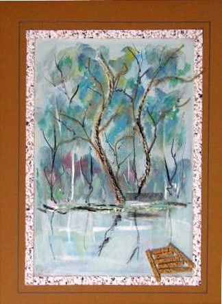 Ręcznie malowany obraz olejny na płycie pilśniowej twardej w drewnianej ramie. (Nr prod.: 750)